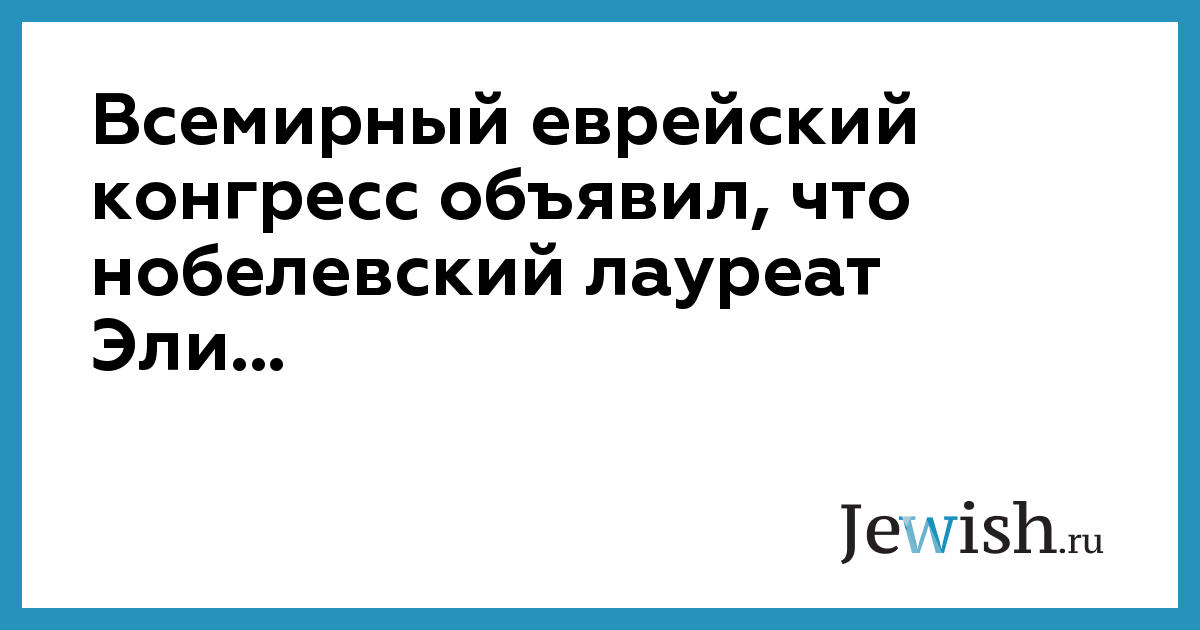 Всемирный еврейский конгресс объявил, что нобелевский лауреат Эли...
