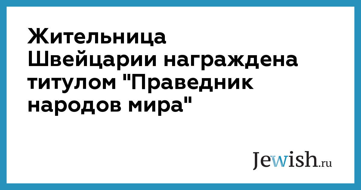 Жительница Швейцарии награждена титулом "Праведник народов мира"