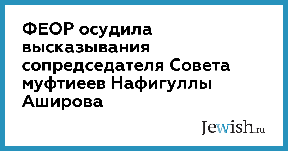 "Недавнее заявление сопредседателя Совета муфтиев России Нафигуллы Аширова, сделанное им в независимом пресс-центре «Москва», о том, что «сионизм является раковой опухолью, поскольку сионизм – это фашизм», вызывает у еврейской общины России крайнее недоумение", — говорится в заявлении ФЕОР.