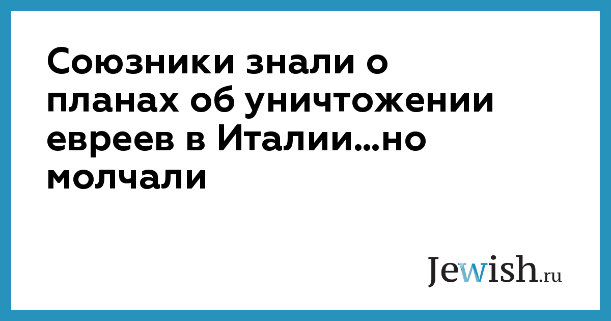 Союзники знали о планах об уничтожении евреев в Италии…но молчали