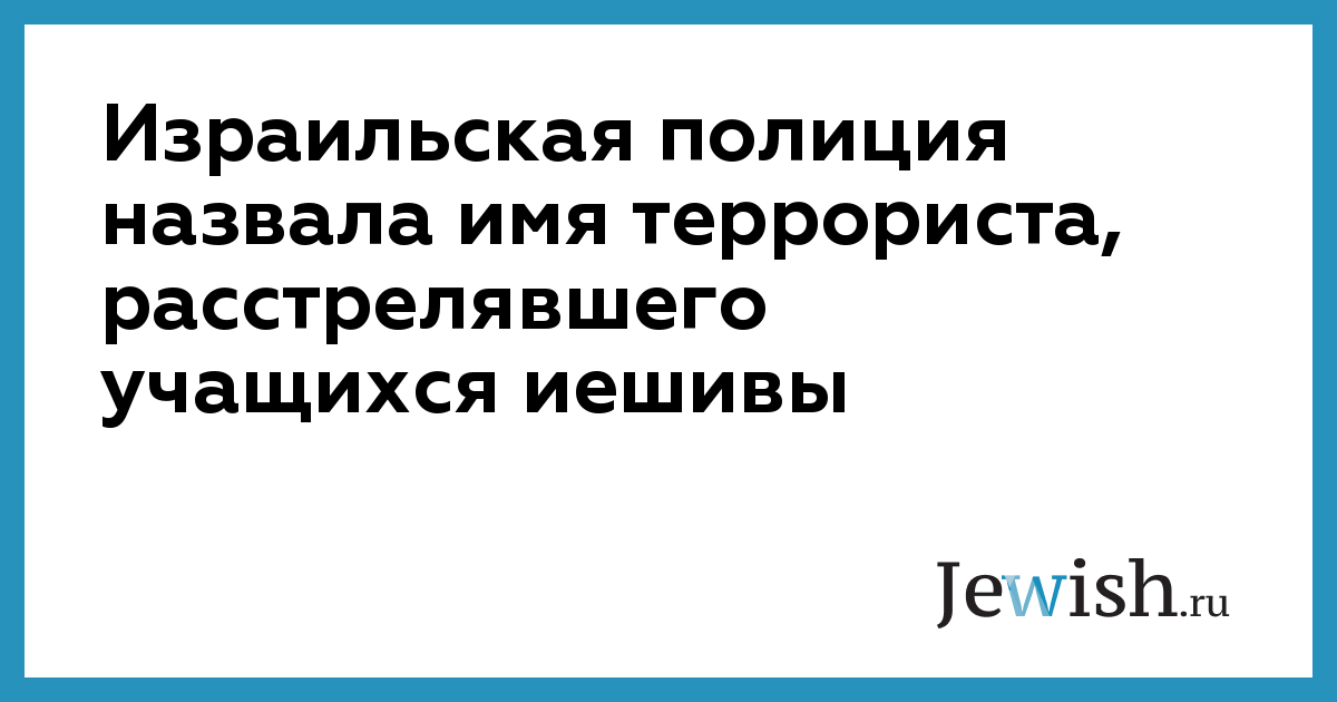 Израильская полиция назвала имя террориста, расстрелявшего учащихся иешивы