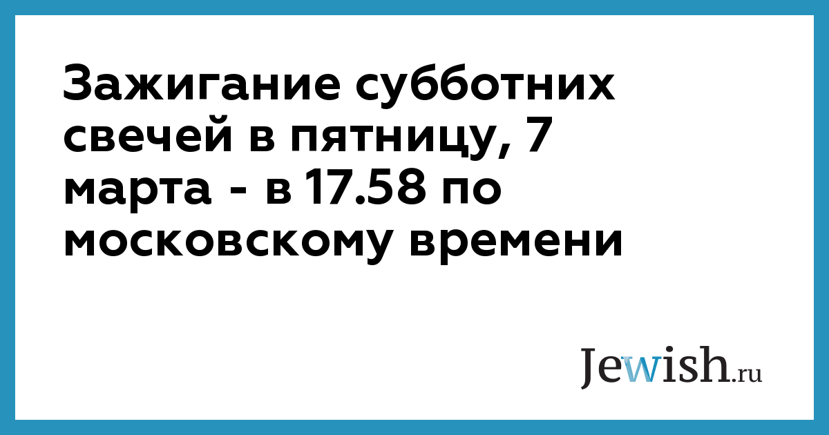 Зажигание субботних свечей в пятницу, 7 марта — в 17.58 по московскому времени