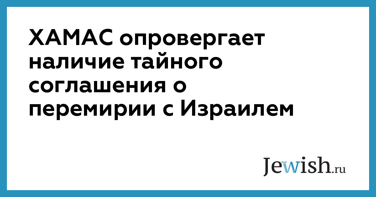 В воскресенье официальный представитель движения ХАМАС опроверг наличие тайного соглашения о перемирии с Израилем, якобы достигнутого при участии Египта, пишет газета Jerusalem Post.