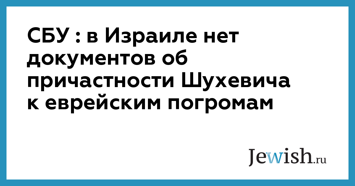СБУ : в Израиле нет документов об причастности Шухевича к еврейским погромам