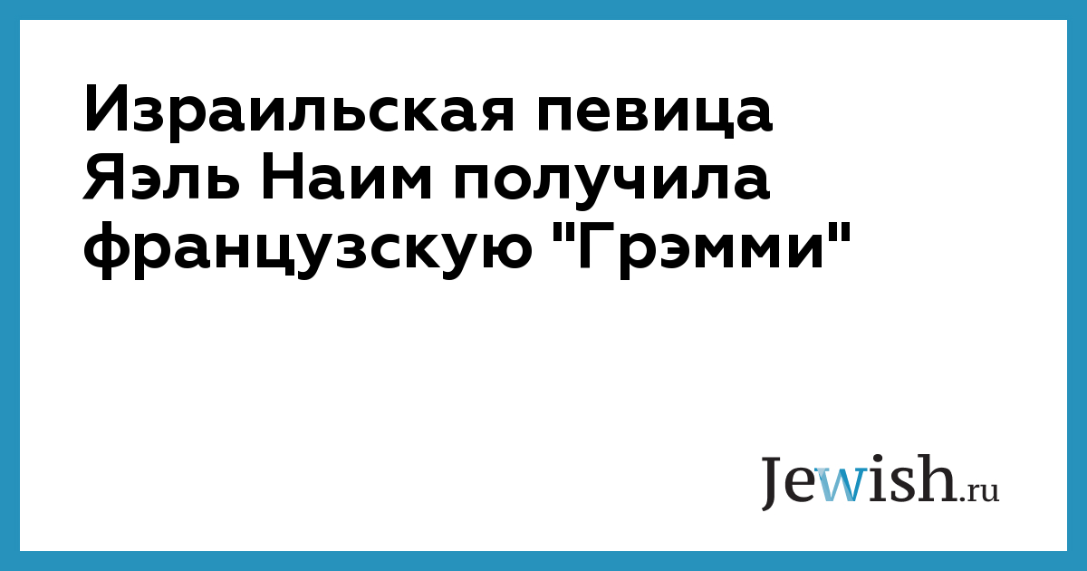 Израильско-французская певица Яэль Наим получила французский аналог "Грэмми", ежегодную премию "Victoires de la Musique" в номинации "Альбом года в мировой музыке", сообщает Ynet.