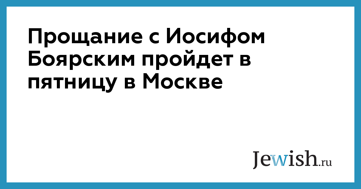 Прощание с известным российским кинорежиссером-мультипликатором Иосифом Боярским пройдет в пятницу, 14 марта, в Москве, в Белом зале Союза кинематографистов России.