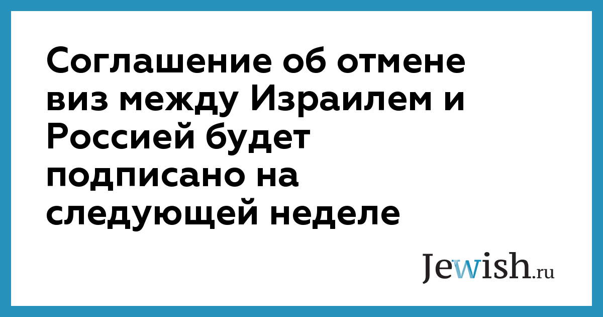Соглашение об отмене виз между Израилем и Россией будет подписано на следующей неделе