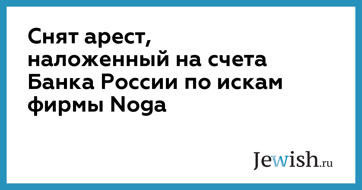 Снят арест, наложенный на счета Банка России по искам фирмы Noga