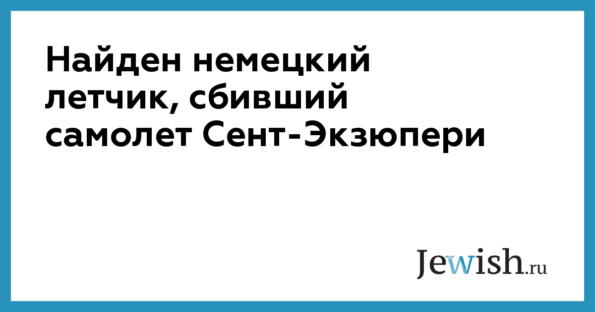 Найден немецкий летчик, сбивший самолет Сент-Экзюпери