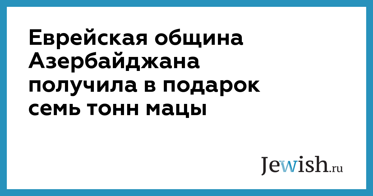 В начале апреля ритуальная пища будет распределена среди членов еврейской диаспоры Азербайджана. Отмечается, что ее получат иудеи не только Баку, но и Губы, Хачмаса, Гянджи, Огуза, Сумгаита и села Привольное.
