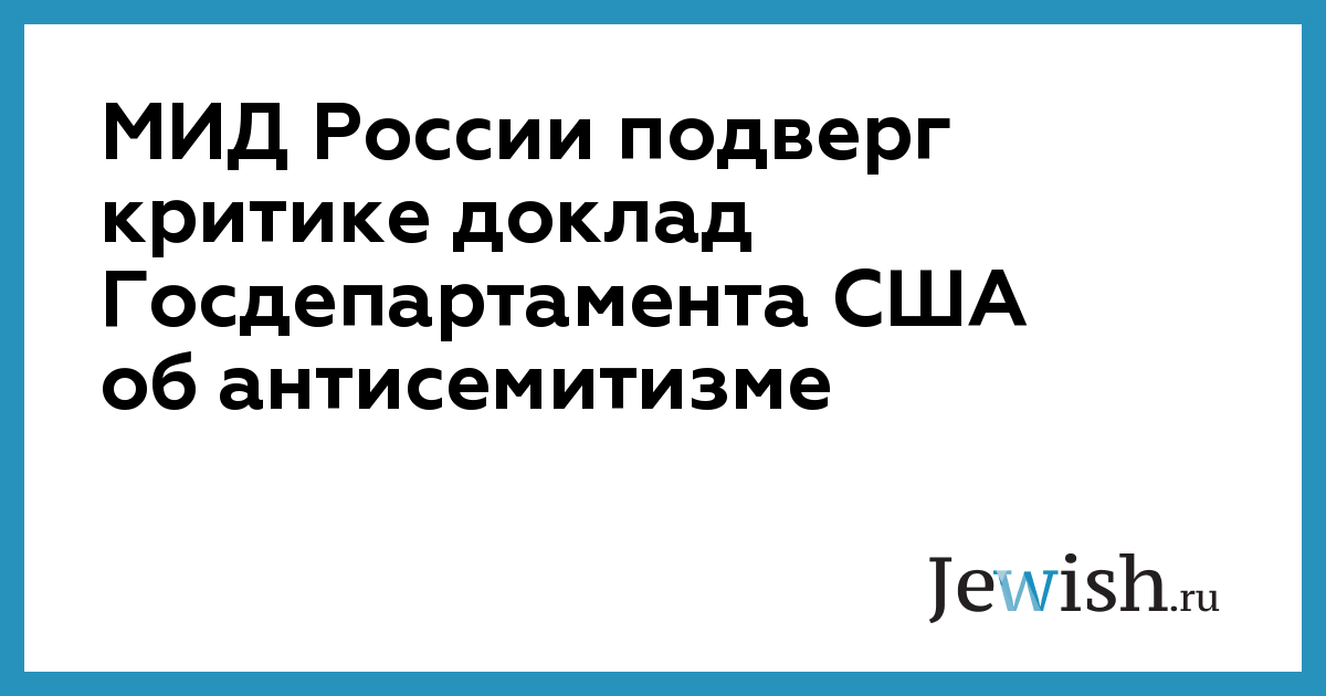 МИД России подверг критике доклад Госдепартамента США об антисемитизме