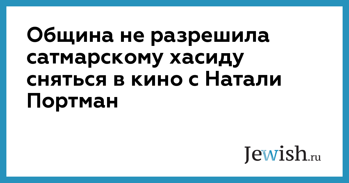 Община не разрешила сатмарскому хасиду сняться в кино с Натали Портман