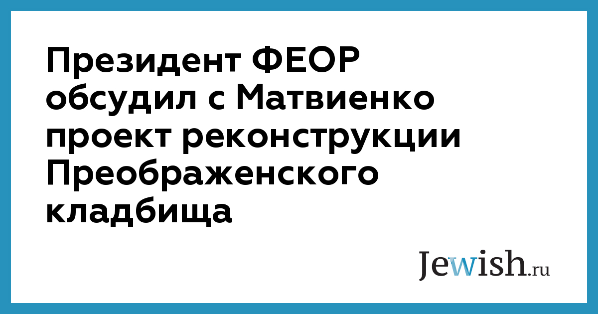 18 марта президент Федерации еврейских общин России Александр Борода и председатель еврейской общины Петербурга встретились с губернатором Санкт-Петербурга Валентиной Матвиенко. На встрече обсуждалась тема реконструкции и реставрации Преображенского еврейского кладбища в Санкт-Петербурге.