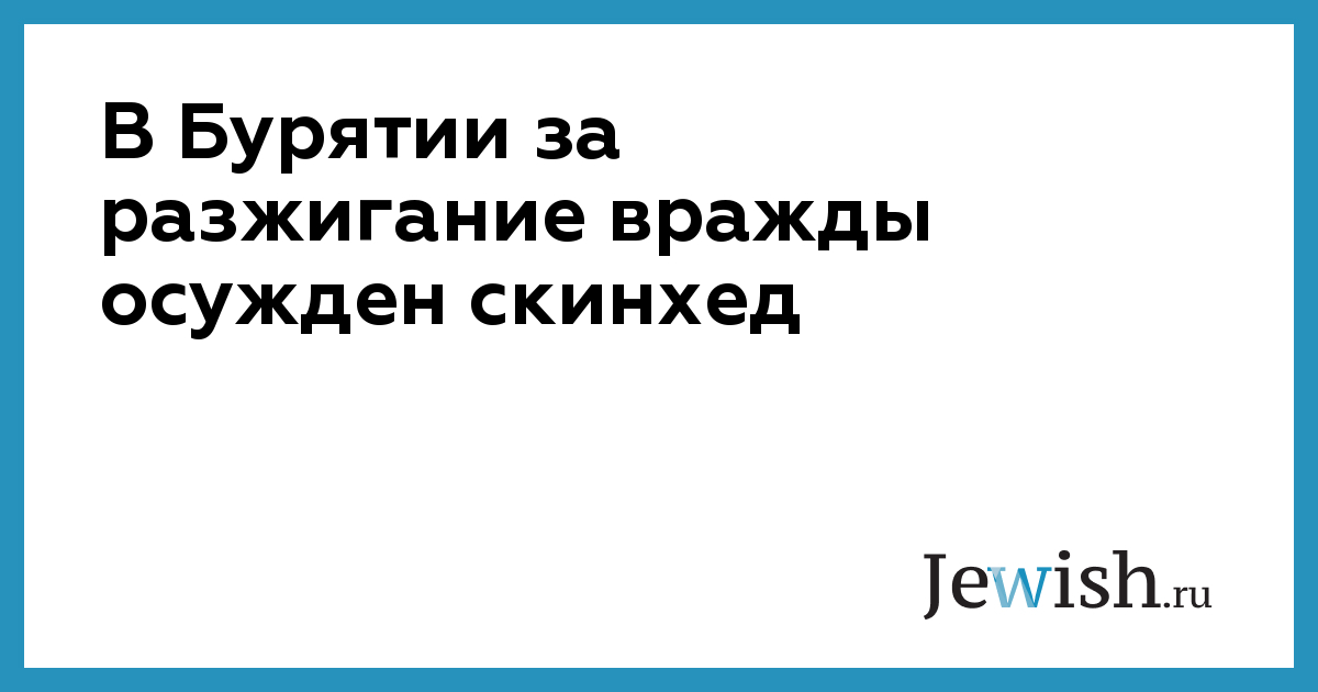 Скинхед был признан виновным в возбуждении ненависти и вражды по признакам расы и национальности. Сам Рябов полностью признал свою вину и раскаялся в содеянном. Учитывая это, суд приговорил его к одному году лишения свободы условно, сообщает Тайга.info.