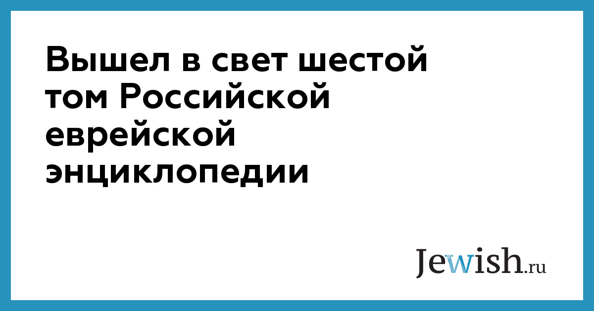 Вышел в свет шестой том Российской еврейской энциклопедии
