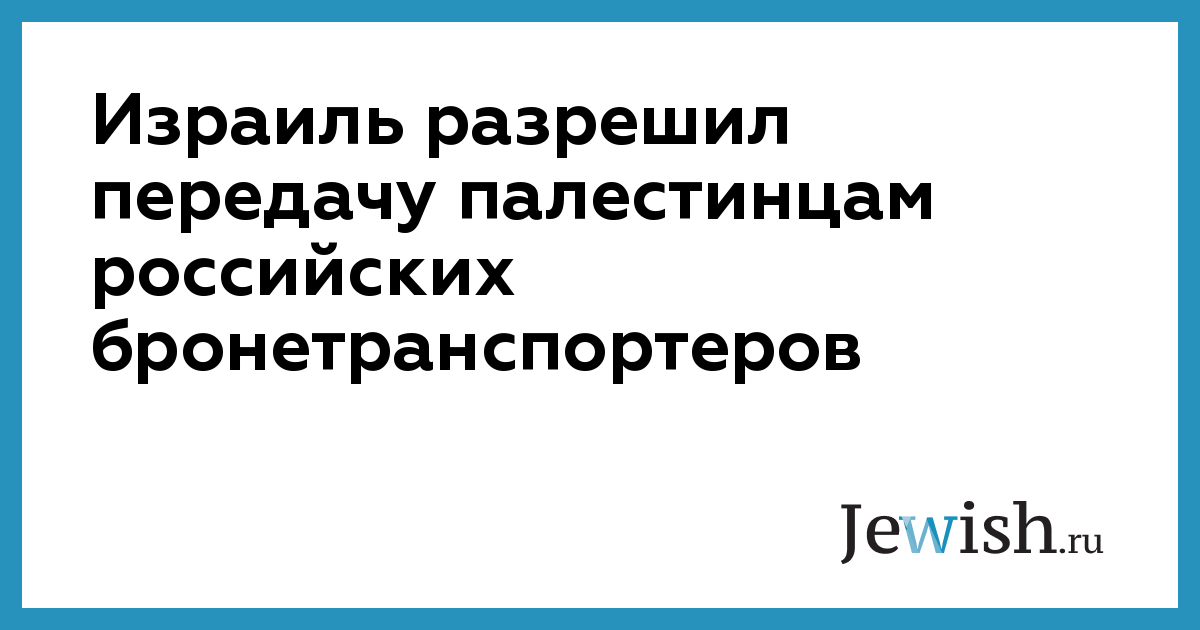 Израиль и Россия согласовали передачу российских бронетранспортеров палестинской национальной администрации. Как передает Ma’ariv, 25 единиц бронетехники из России палестинцы получат уже на следующей неделе.