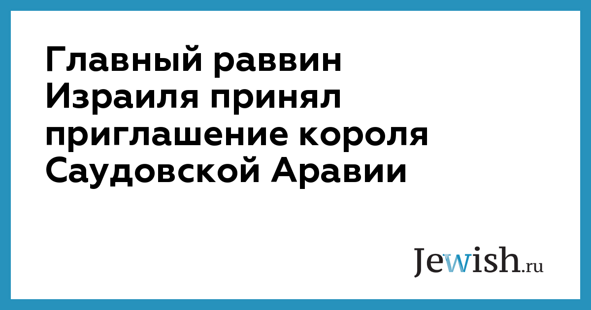 Главный раввин Израиля принял приглашение короля Саудовской Аравии