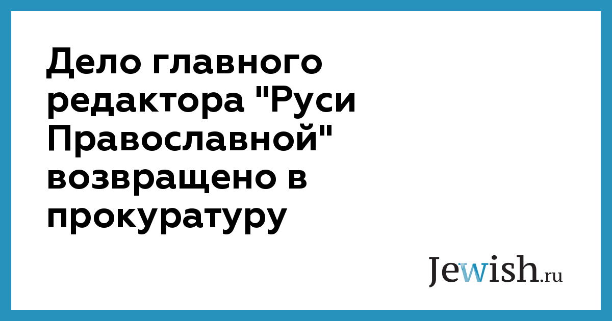 Дело главного редактора "Руси Православной" возвращено в прокуратуру