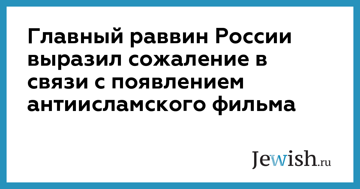 Главный раввин России выразил сожаление в связи с появлением антиисламского фильма
