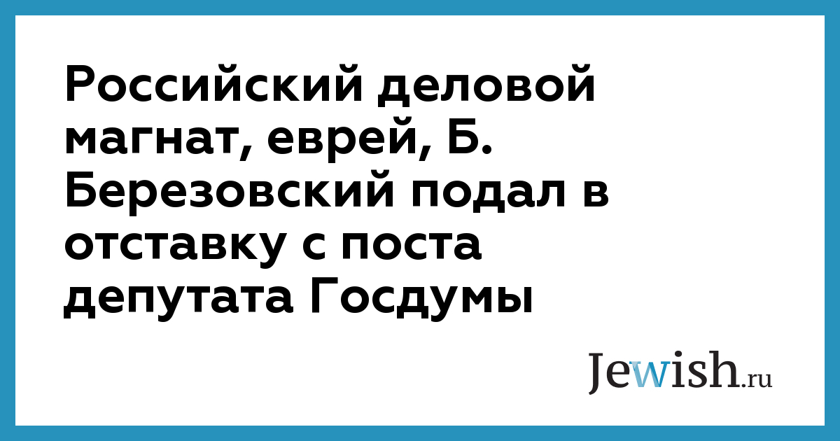 Российский деловой магнат, еврей, Б. Березовский подал в отставку с поста депутата Госдумы