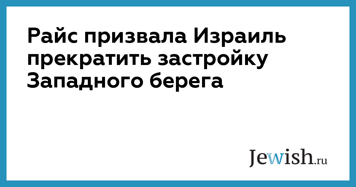 Райс призвала Израиль прекратить застройку Западного берега