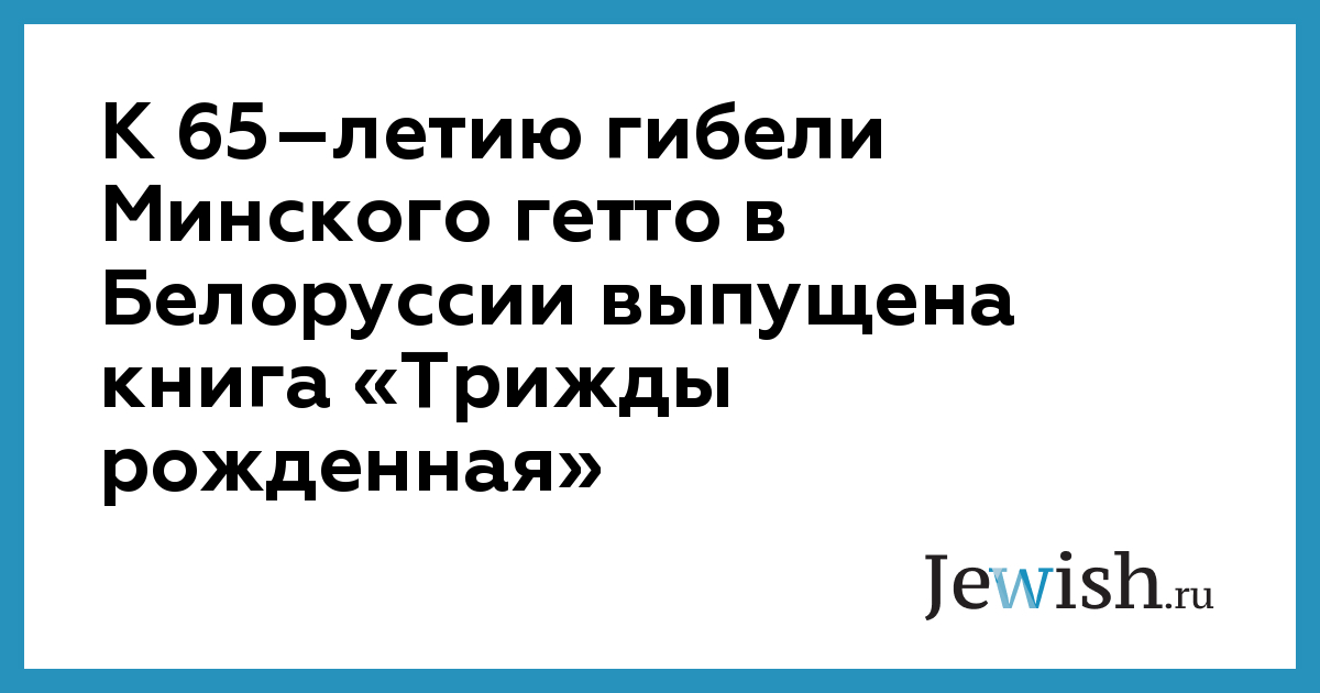 К 65–летию гибели Минского гетто в Белоруссии выпущена книга «Трижды рожденная»