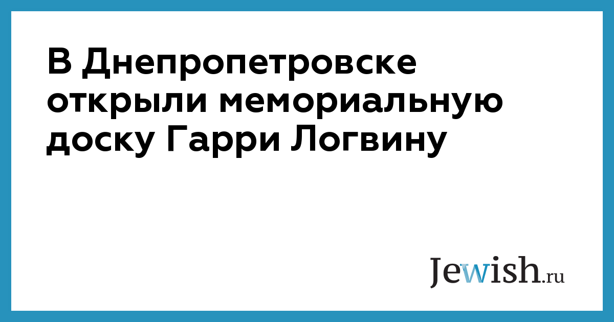 1 апреля в Днепропетровске была торжественно открыта мемориальная доска, посвященная памяти народного артиста Украины Гарри Борисовича Логвина. Об этом ИА «Новый мост» сообщили в пресс-службе горсовета Днепропетровска.