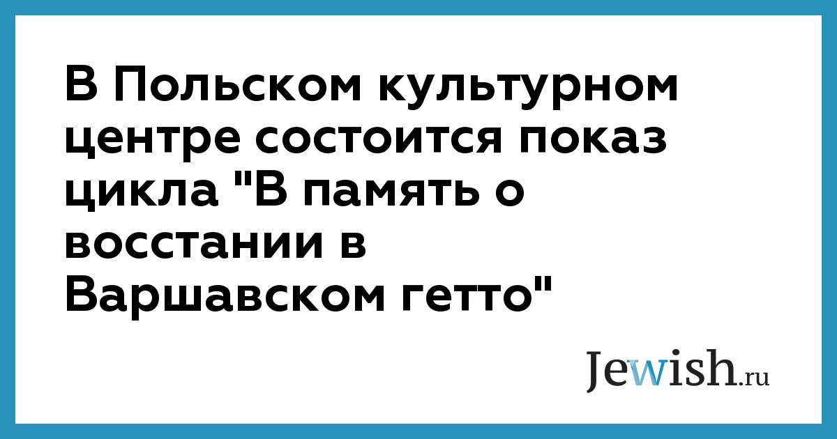 В Польском культурном центре состоится показ цикла "В память о восстании в Варшавском гетто"
