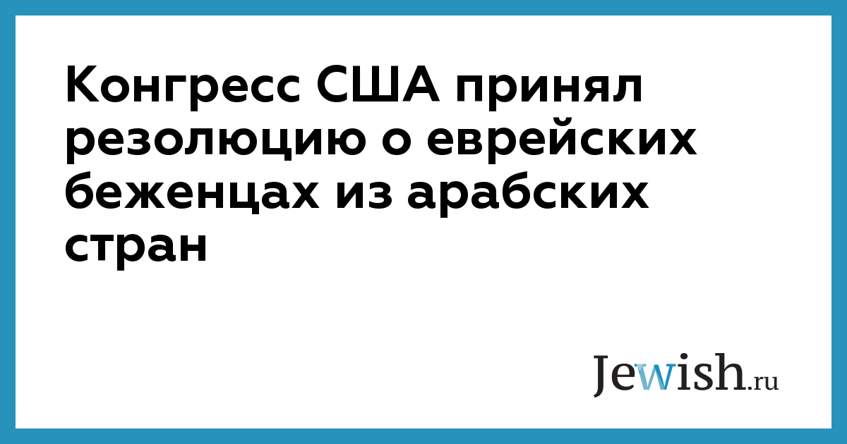 Во вторник Палата представителей Конгресса США приняла резолюцию о признании еврейских беженцев из арабских государств, которым пришлось покинуть свои дома после создания государства Израиль.
