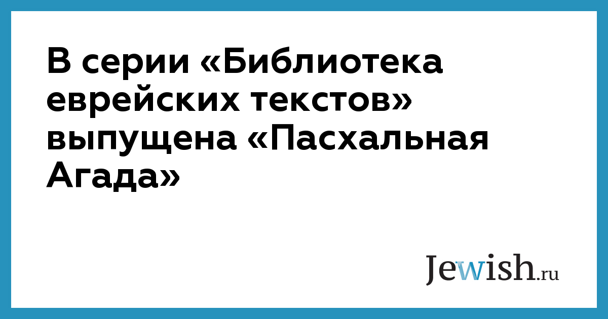 В серии «Библиотека еврейских текстов» выпущена «Пасхальная Агада»