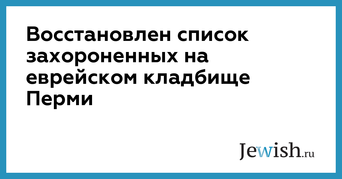Впервые восстановленный список публикуется в пермской еврейской ежемесячной газете "Кешер" за апрель-май (№ 53-54).