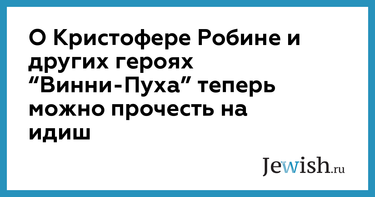 О Кристофере Робине и других героях “Винни-Пуха” теперь можно прочесть на идиш
