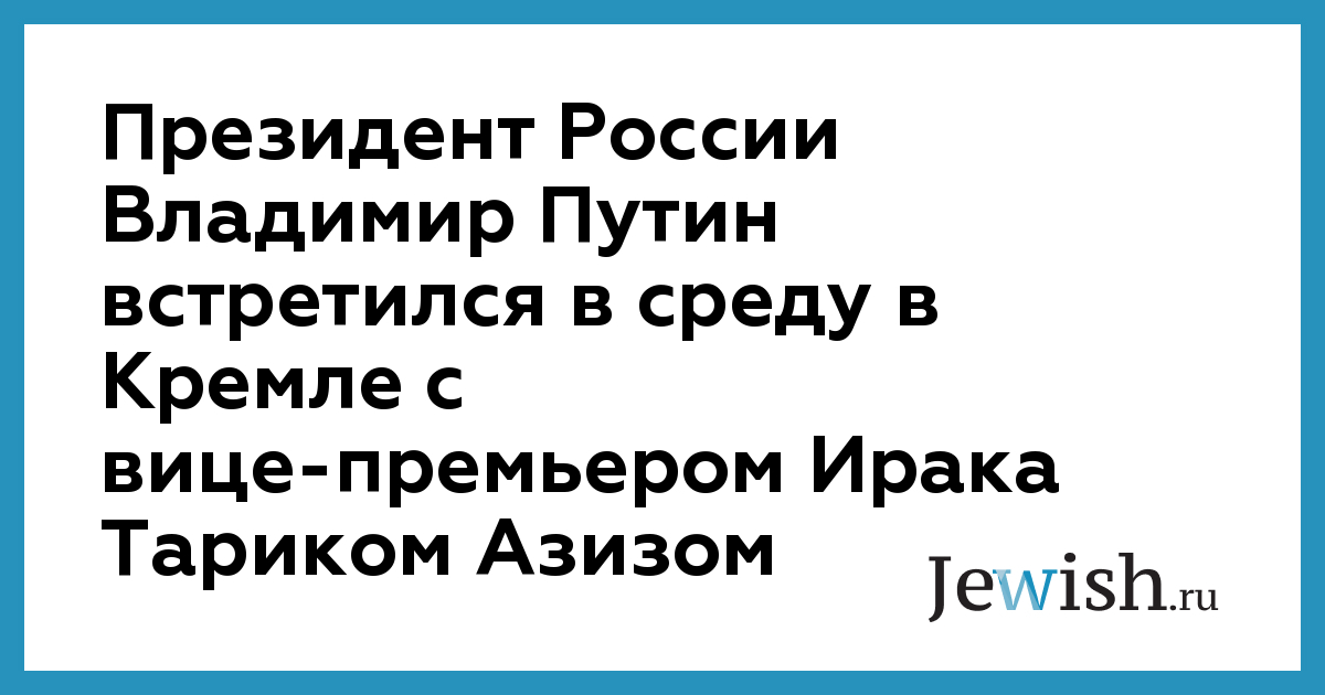 Президент России Владимир Путин встретился в среду в Кремле с вице-премьером Ирака Тариком Азизом