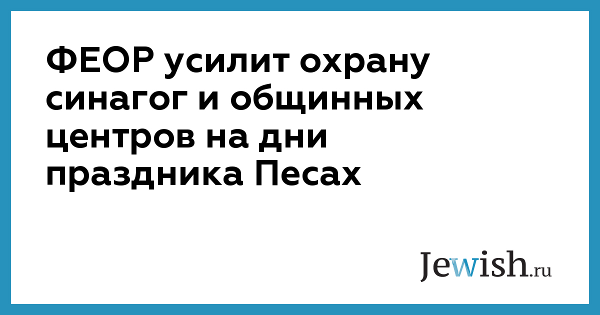 ФЕОР усилит охрану синагог и общинных центров на дни праздника Песах