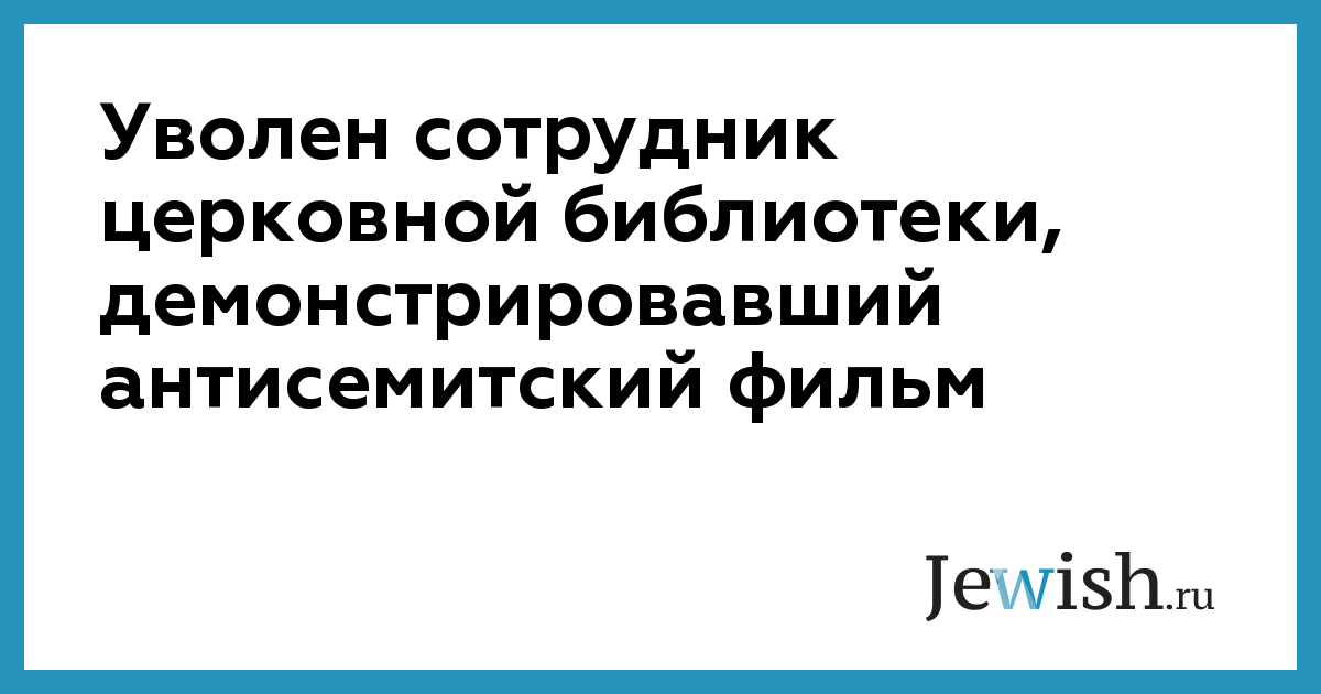 Уволен сотрудник церковной библиотеки, демонстрировавший антисемитский фильм