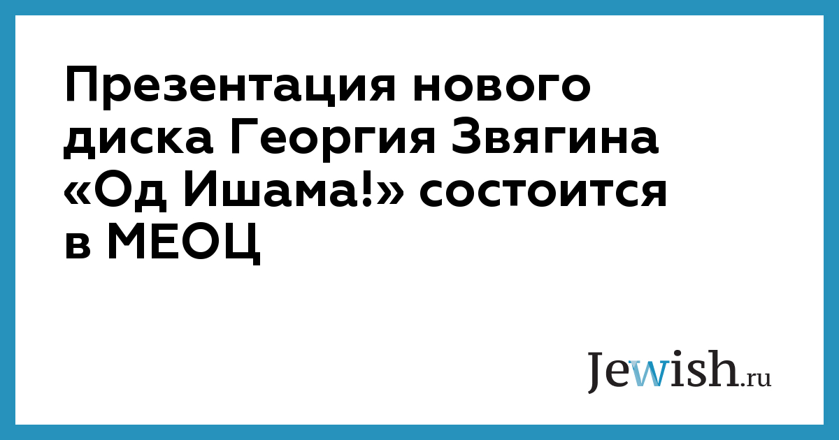 Презентация нового диска Георгия Звягина «Од Ишама!» состоится в МЕОЦ