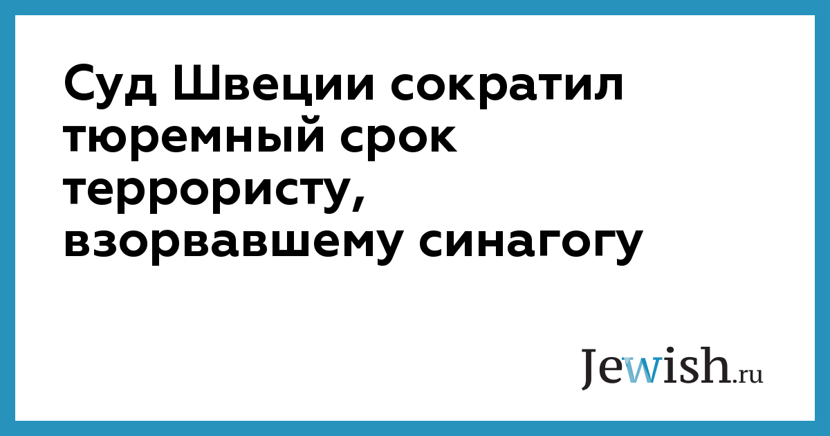 Суд Швеции сократил тюремный срок террористу, взорвавшему синагогу