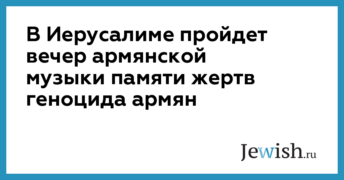 В Иерусалиме пройдет вечер армянской музыки памяти жертв геноцида армян