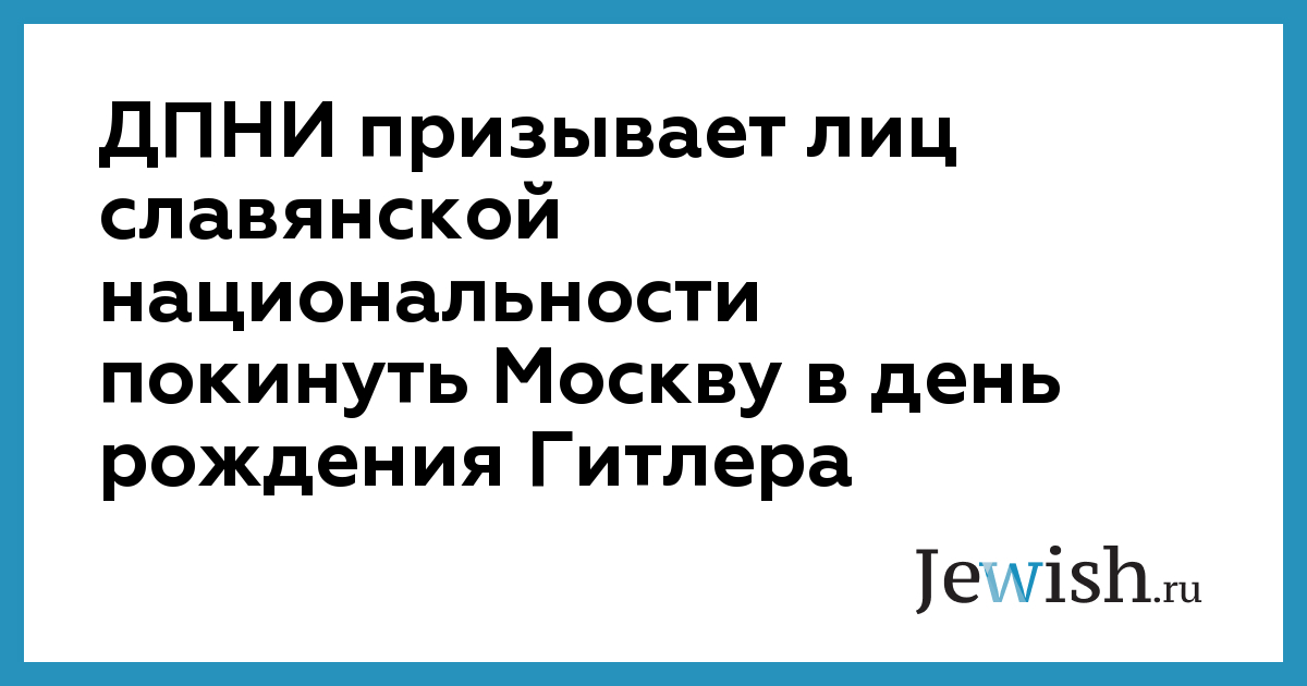 «Как стало известно, МВД России планирует особо отметить очередную годовщину со дня рождения Адольфа Гитлера. В этот день будут проводиться специальные мероприятия по профилактике (поражению в правах) среди лиц славянской национальности. В этой связи ЦОС ДПНИ обращается ко всем сторонникам движения и просто молодым людям, имеющим ярковыраженную славянскую внешность с просьбой покинуть Москву на выходные 19-20 апреля, либо воздержаться 20 апреля от прогулок по городу», – говорится в заявлении ДПНИ.