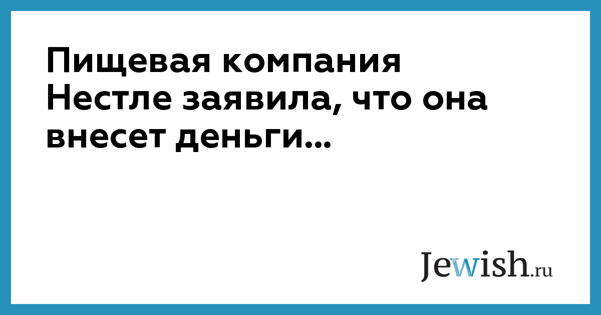 Пищевая компания Нестле заявила, что она внесет деньги...