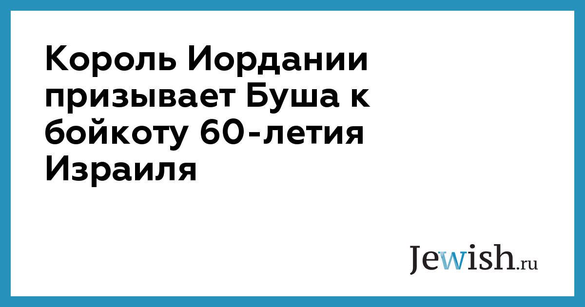 Король Иордании призывает Буша к бойкоту 60-летия Израиля