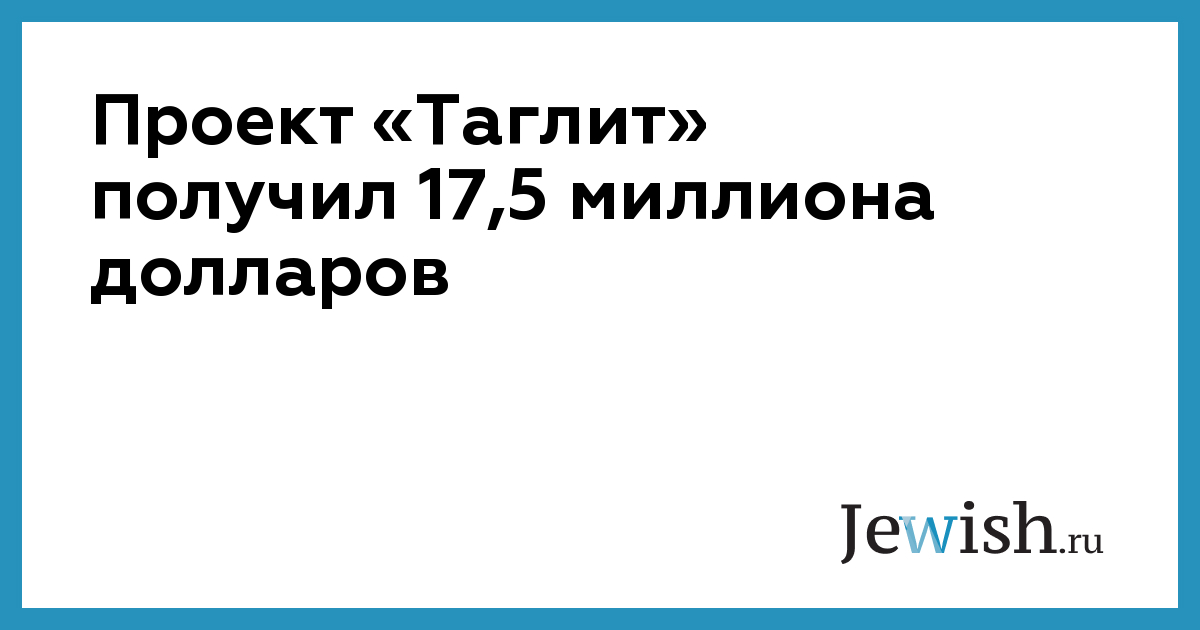 Проект «Таглит» получил 17,5 миллиона долларов