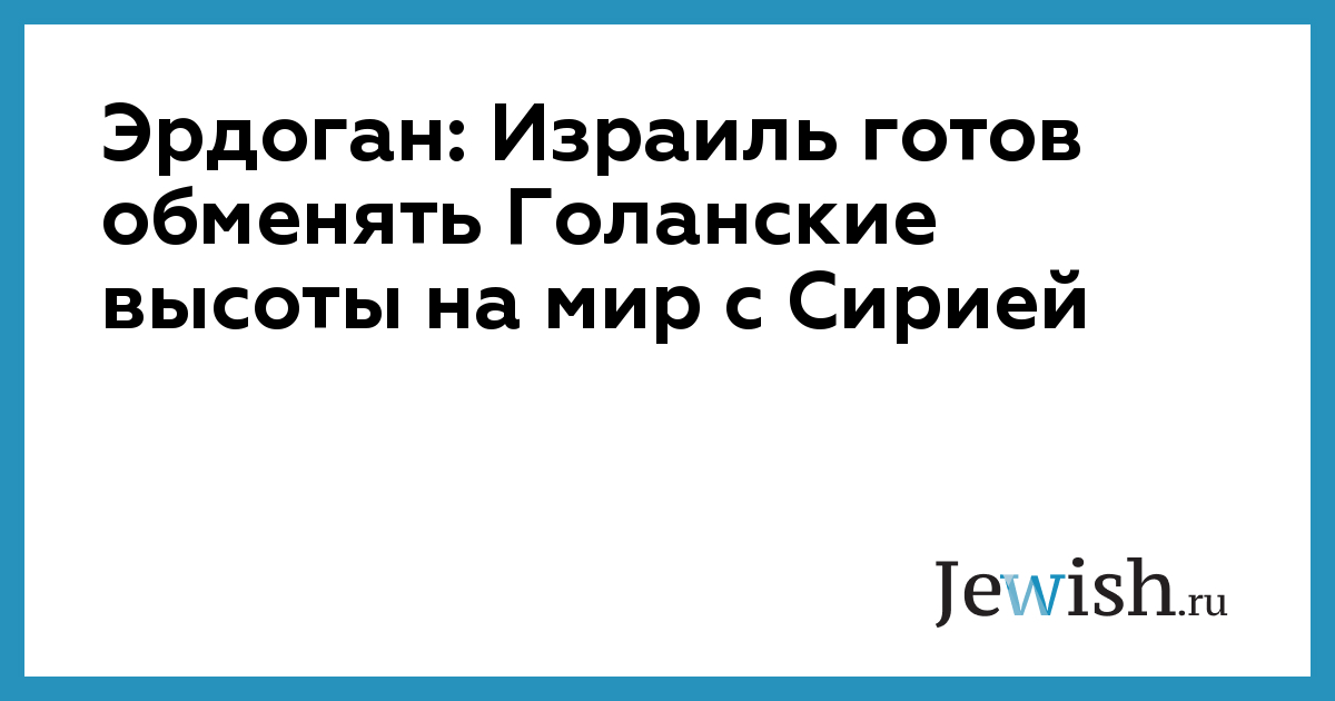 Эрдоган: Израиль готов обменять Голанские высоты на мир с Сирией