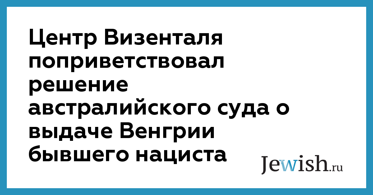 Еврейская организация, занимающаяся поисками и преданием суду нацистских военных преступников, поприветствовала отказ Верховного суда Австралии в ответ на апелляцию выходца из Венгрии Чарльза Зентаи, сообщает АВС. В Венгрии Зентаи обвиняют в убийстве 54-летней давности.