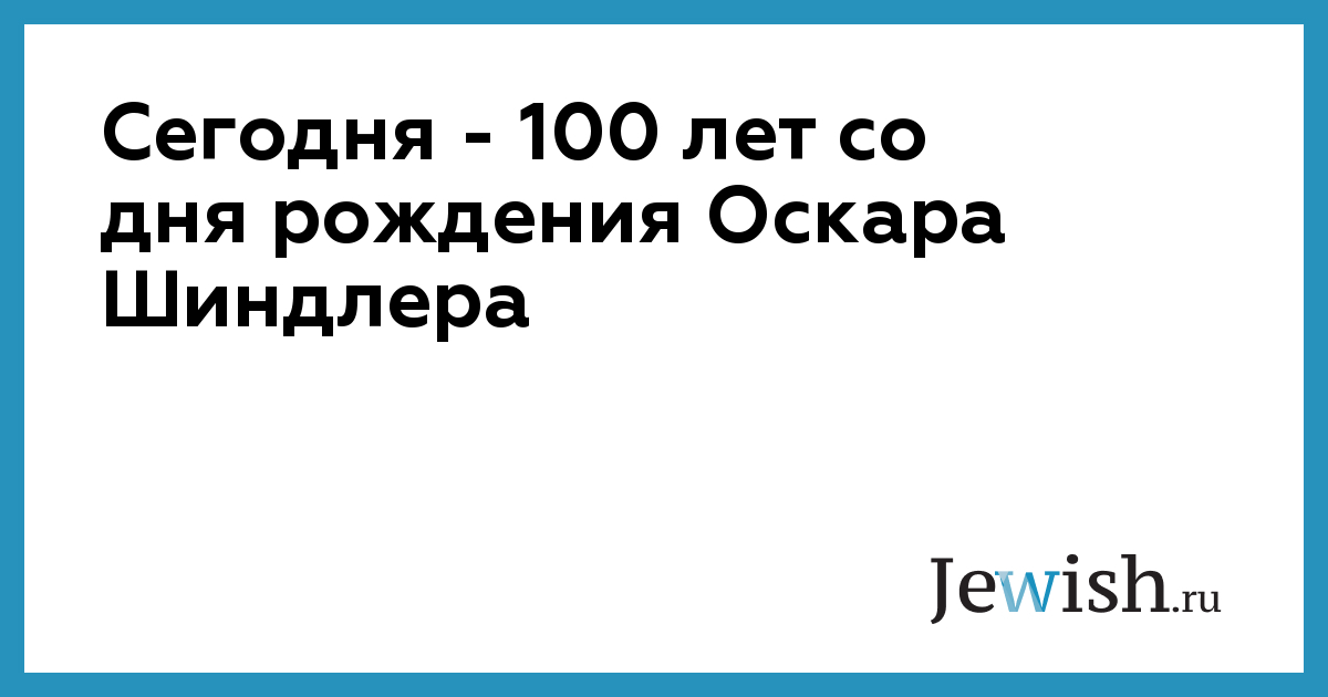Сегодня — 100 лет со дня рождения Оскара Шиндлера