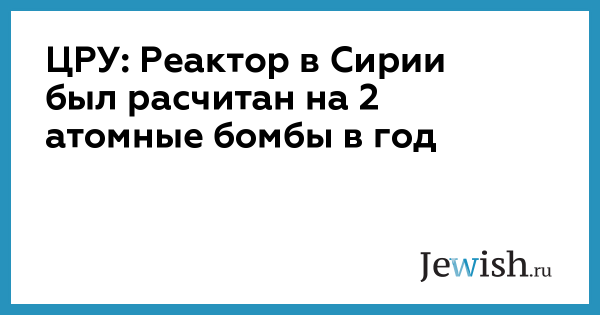 ЦРУ: Реактор в Сирии был расчитан на 2 атомные бомбы в год