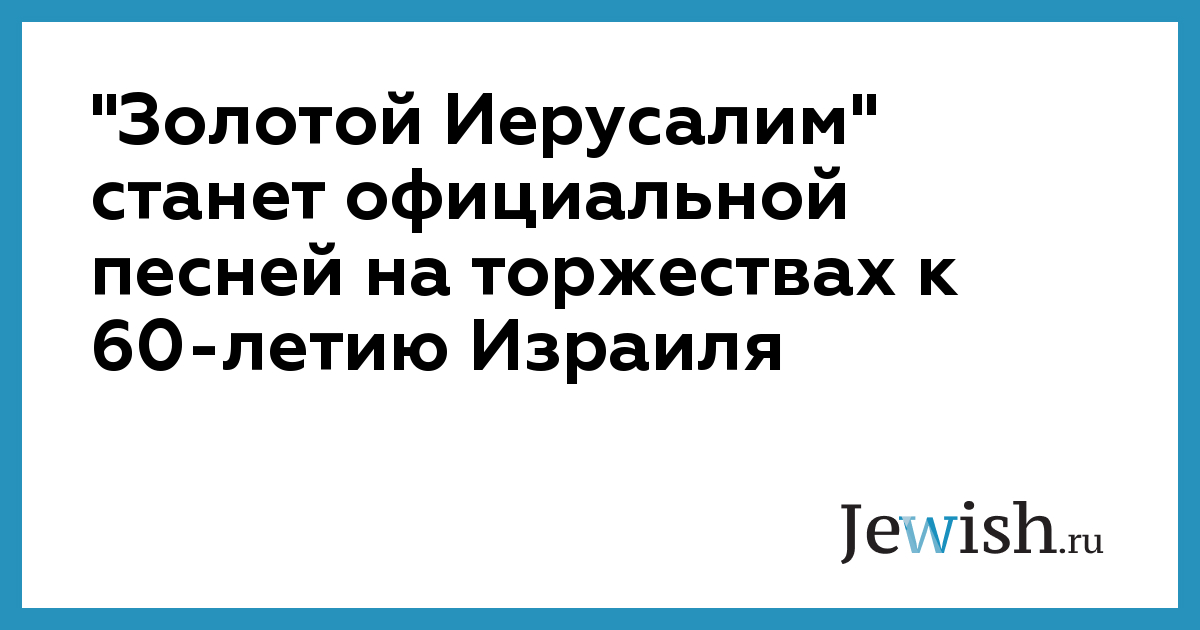 Песня "Ерушалаим шель захав" — "Золотой Иерусалим", написанная Наоми Шемер, была выбрана из одиннадцати других мелодий и станет официальной песней Израиля во время торжеств по случаю 60-ой годовщины образования еврейского государства, сообщает Mignews.