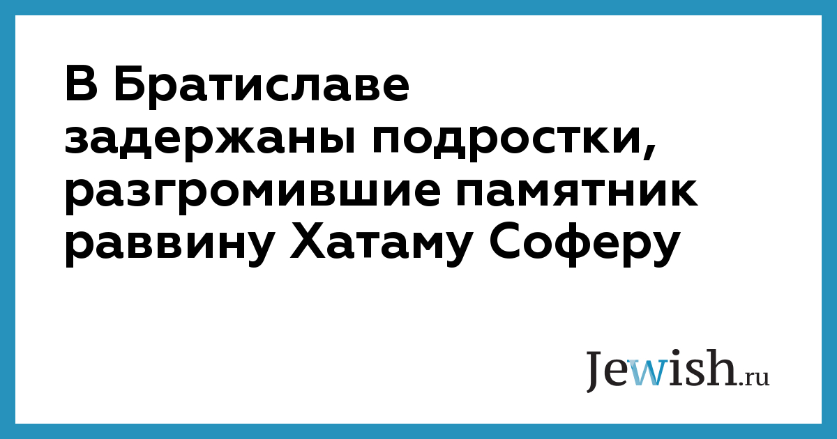 Полиция Словакии задержала троих подростков, подозреваемых в осквернении и разрушении в Братиславе памятника выдающемуся еврейскому ученому, раввину Хатаму Соферу (1766-1839), сообщает AFP.