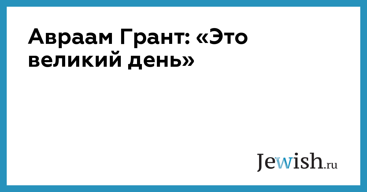 Авраам Грант: «Это великий день»