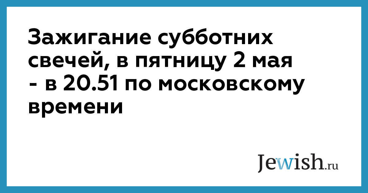 Зажигание субботних свечей, в пятницу 2 мая — в 20.51 по московскому времени